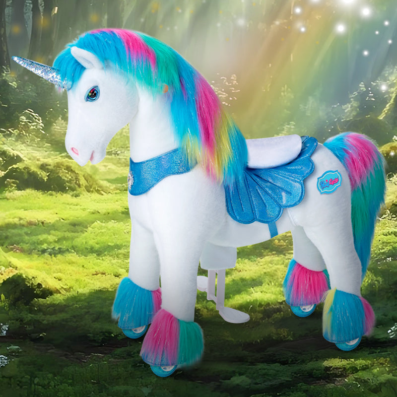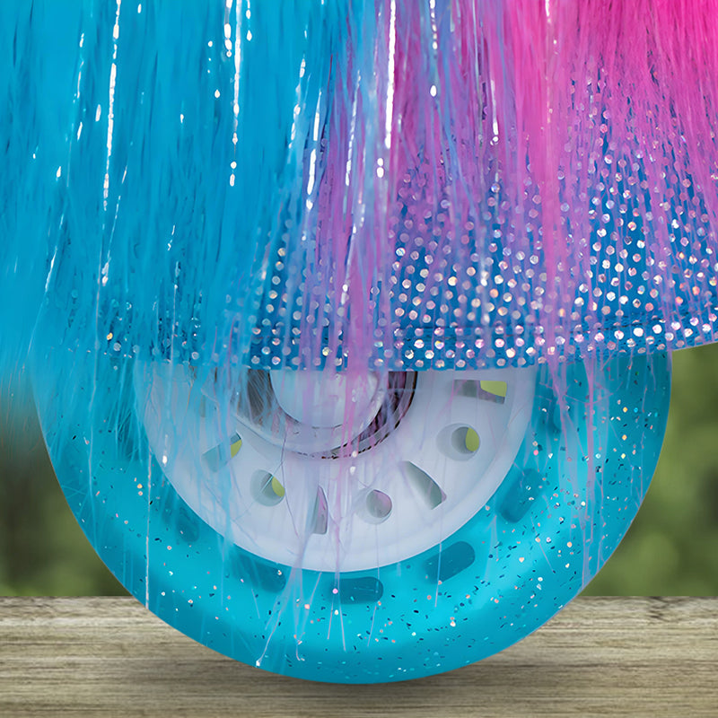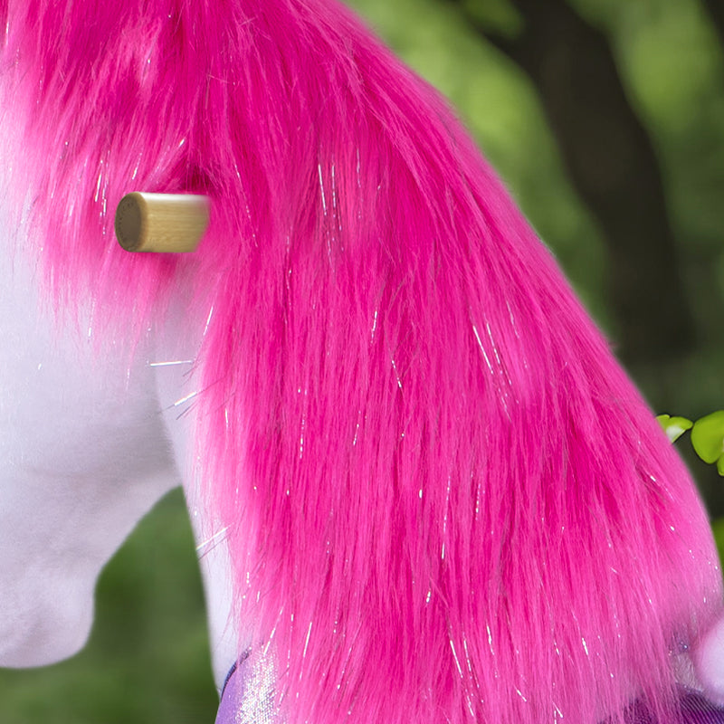 Les paillettes réversibles sur la corne changent de couleur d'un simple toucher, alliant magie et jeu. Un détail chatoyant qui invite à l'interaction et stimule l'imagination.